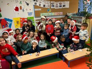 Rencontre avec le Père NoëlPar Marine Brodin / 19 décembre 2025 Les TPS-PS ont rencontré le Père Noël. Il est venu les mains chargées de cadeaux pour la classe : une poussette, un chariot de ménage et un chariot pour faire les courses. Un très beau moment pour les enfants !