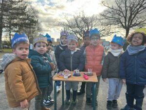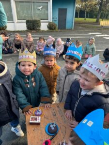 Aujourd’hui, les 3 classes du cycle 1 se sont réunies dehors pour fêter les anniversaires des mois d’octobre et novembre ! Un joli moment de partage.