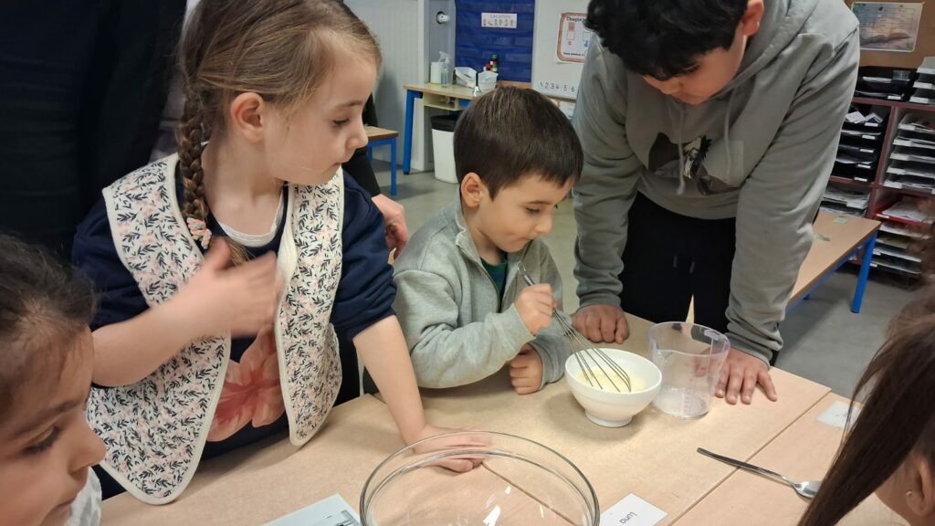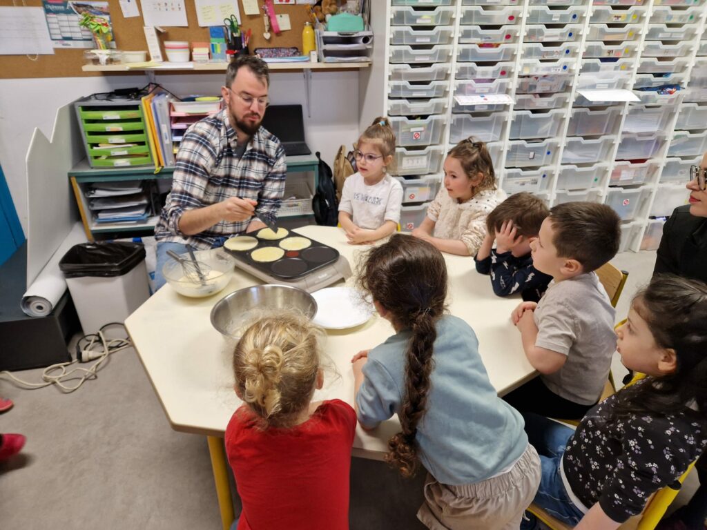 Un immense merci aux parents venus prêter main forte. Grâce à votre aide précieuse, les élèves ont pu réaliser des crêpes.